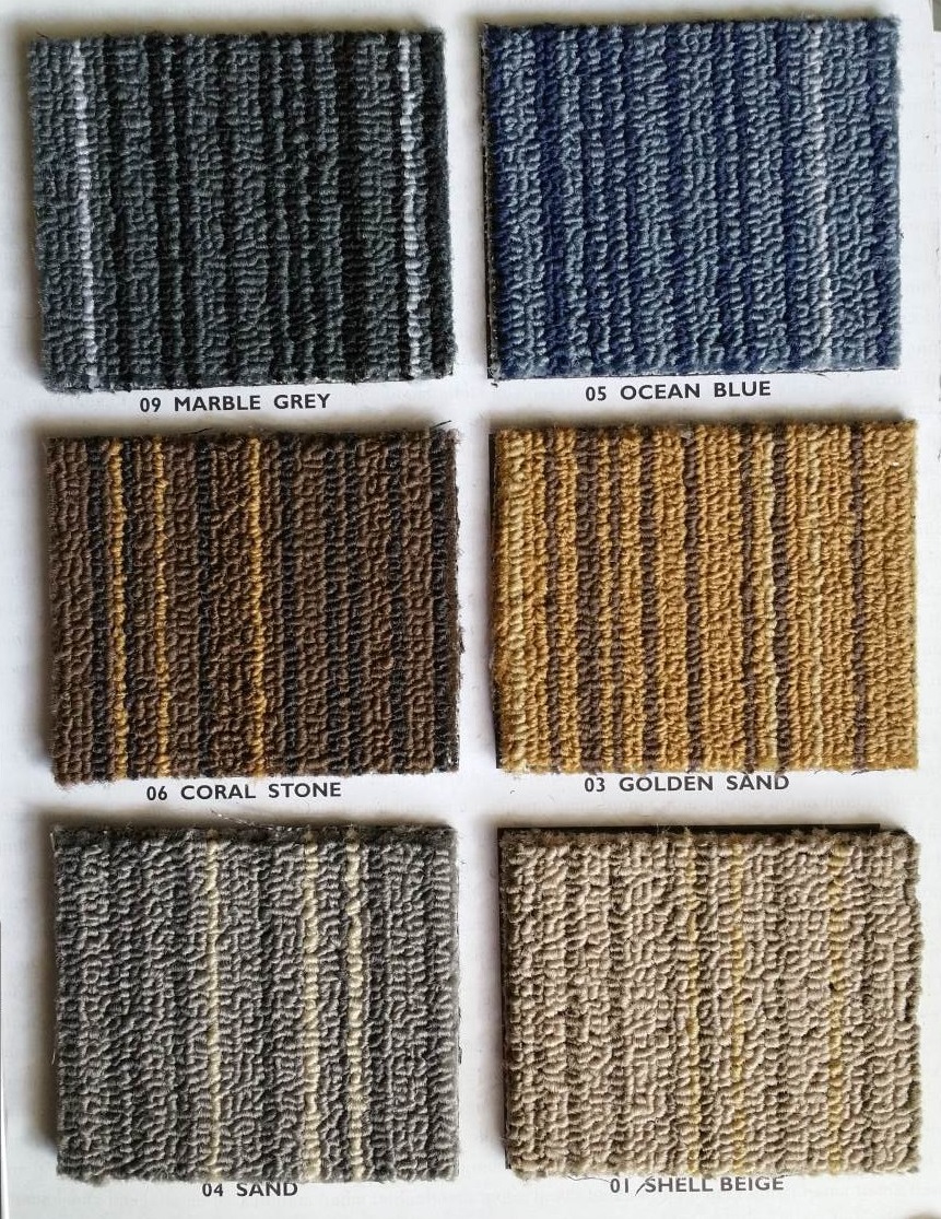 MELO Carpet Tiles Posted byadmin February 21, 2015April 7, 2019 Leave a comment on MELO Carpet Tiles Specifications: Construction Graphic Loop Pile Fibre 100% Solution Dyed BCF P.P. Pile Height 7 mm Pile Wight 600 gm Gauge 1/10″ Backing ECO Backing Size per Tile 50cm x 50cm Packing 20 pcs per box (5m2)